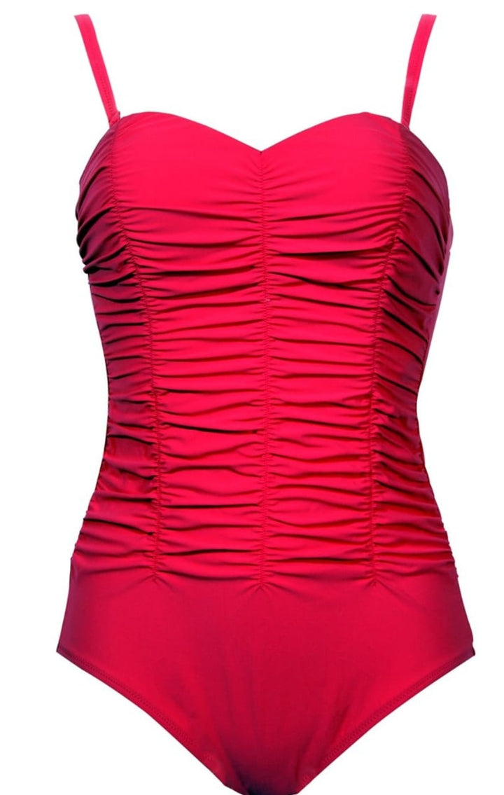 Dive into elegance with this captivating red one-piece swimsuit. Featuring a sophisticated sweetheart neckline and expertly crafted ruching across the bodice, this swimsuit is designed to sculpt and enhance your figure, providing a flattering and confident look. The adjustable spaghetti straps ensure a comfortable and customized fit. Made from a high-quality, stretchable, and quick-drying fabric, it offers ultimate comfort and durability for all your summer adventures. Whether you're relaxing by the pool or enjoying the beach, this swimsuit combines classic charm with modern appeal.